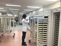 薬務では、病院の中で使用される医薬品の購入・在庫・供給・品質管理業務を行っています。医薬品は、診療上不可欠なものでありヒトの生命に直結するものとして、正確、円滑、迅速に供給できるように配慮しています。また、医薬品が本来有する有効性、安全性が患者様に使用されるまで充分に確保されるように品質管理を行っています。病棟や外来等に定数配置している医薬品においても、定期的に期限チェックや保存状況チェックを行い品質確保に努めています。患者様に安心して医薬品を使用していただけるように薬剤師の専門的な知識を基に努力しています。