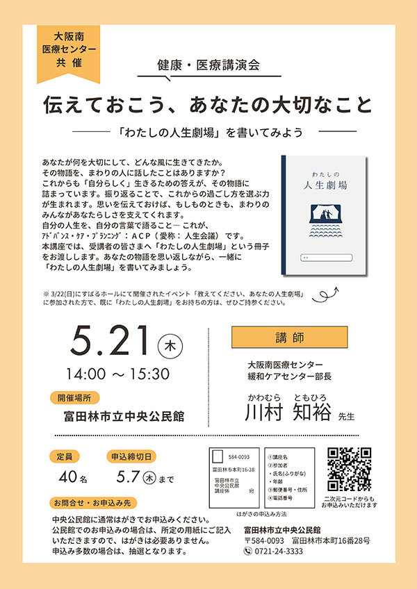 | 2026.3.22 | 教えてください、あなたの人生劇場 ~アドバンス・ケア・プランニングについて知ろう~ |